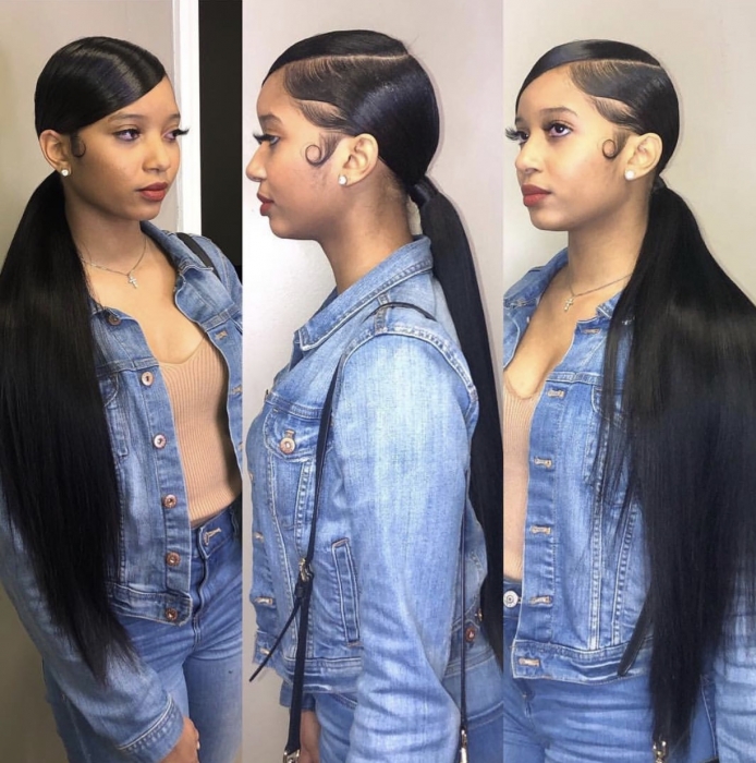 You can wear it up, down, to the side—the choice is yours. Come with hair in a low ponytail with a side or middle part Straighten and smooth down your hair with a gel or styling cream, then create a side parting and secure your ponytail on the opposite side. Round curls never go out of style. Today's video is showing you how to do a side part extended ponytail! 2 hours 45 minutes @ $70.00. This stunning low ponytail is sleeked to infinity. With flat twists on the side, a side part, volume and curls on the weave, you can definitely . If you choose to part your hair, make sure your part is as straight as possible. Half up, half down~ cute and sleek. Don't forget to subscribe and leave me a few comments, thumbs up, . For this style, long, wavy hair is styled into a sleek low, side ponytail with a deep side part. Low side part weave ponytail | weave ponytail, black women hairstyles, tail.